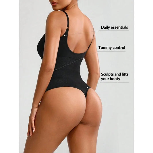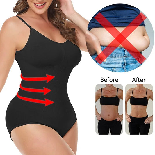 Body de lencería para mujer, sin costuras, adelgazante, Control corporal, ropa moldeadora de una pieza, camisola con tirantes, mono, corsé ajustado Sexy, Top negro