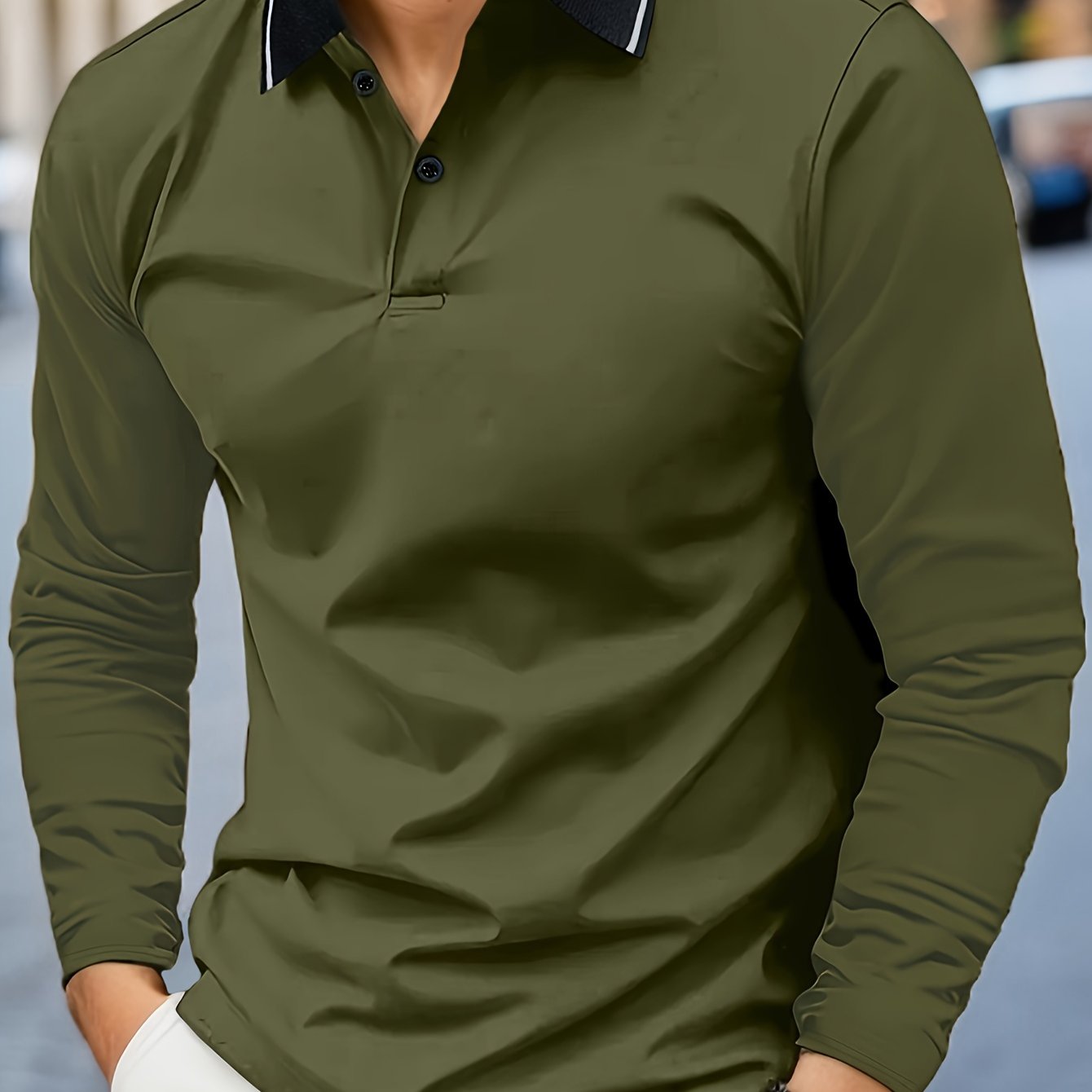 Men's Casual V-Neck Long Sleeve Rugby Shirt For Spring Autumn, Men's Clothing